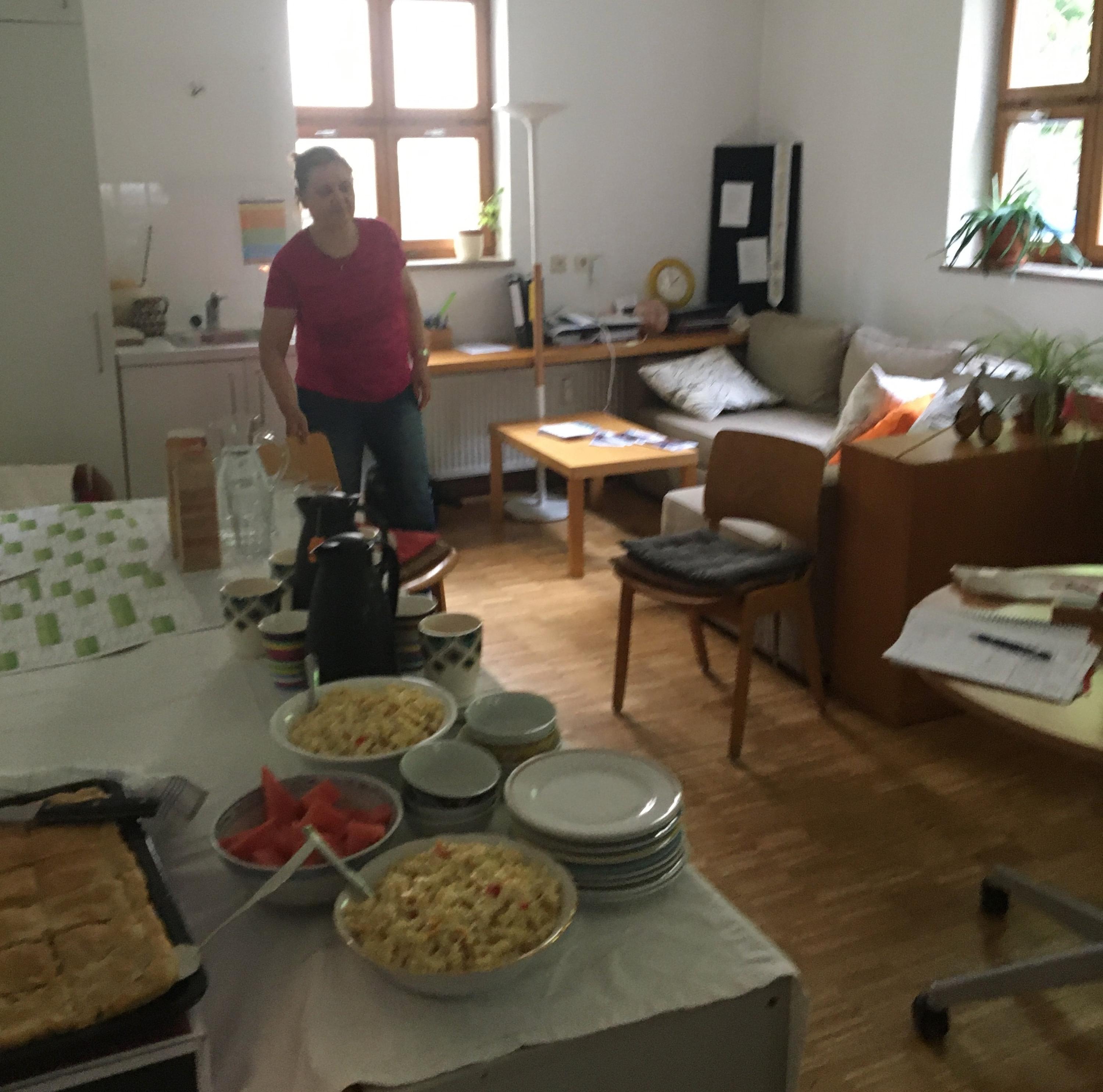 Eine beeindruckende kollegiale Erfahrung der letzten Zeit ist die uneigennützige Unterstützung von drei Kolleginnen, die für das leibliche Wohl des Teams sorgten. Bei einer Teambesprechung bereiten sie liebevoll Suppe und wunderschöne Häppchen in unserer Küche zu. Solch ein Einsatz für das Gemeinsame ist charakteristisch für “für-einander” und seine Mitarbeiterinnen und Mitarbeiter.